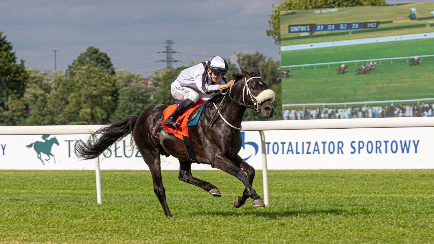 Mistrzowski finisz Szczepana Mazura na Elnizo. Fot. Tor Służewiec