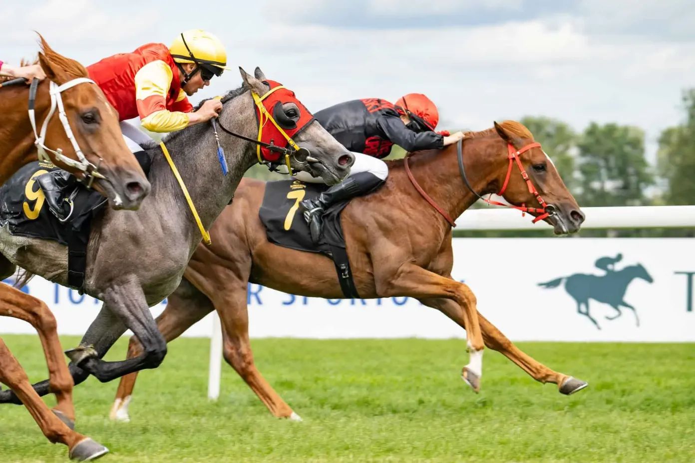 Mistrzowski finisz Szczepana Mazura na Elnizo (od pola). Fot. Tor Służewiec